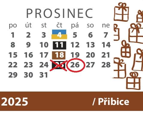 Původně plánovaný termín svozu uvedený v kalendáři svozu na čtvrtek 25.12.2025 se z provozních důvodů přesouvá na pátek 26.12.2025.