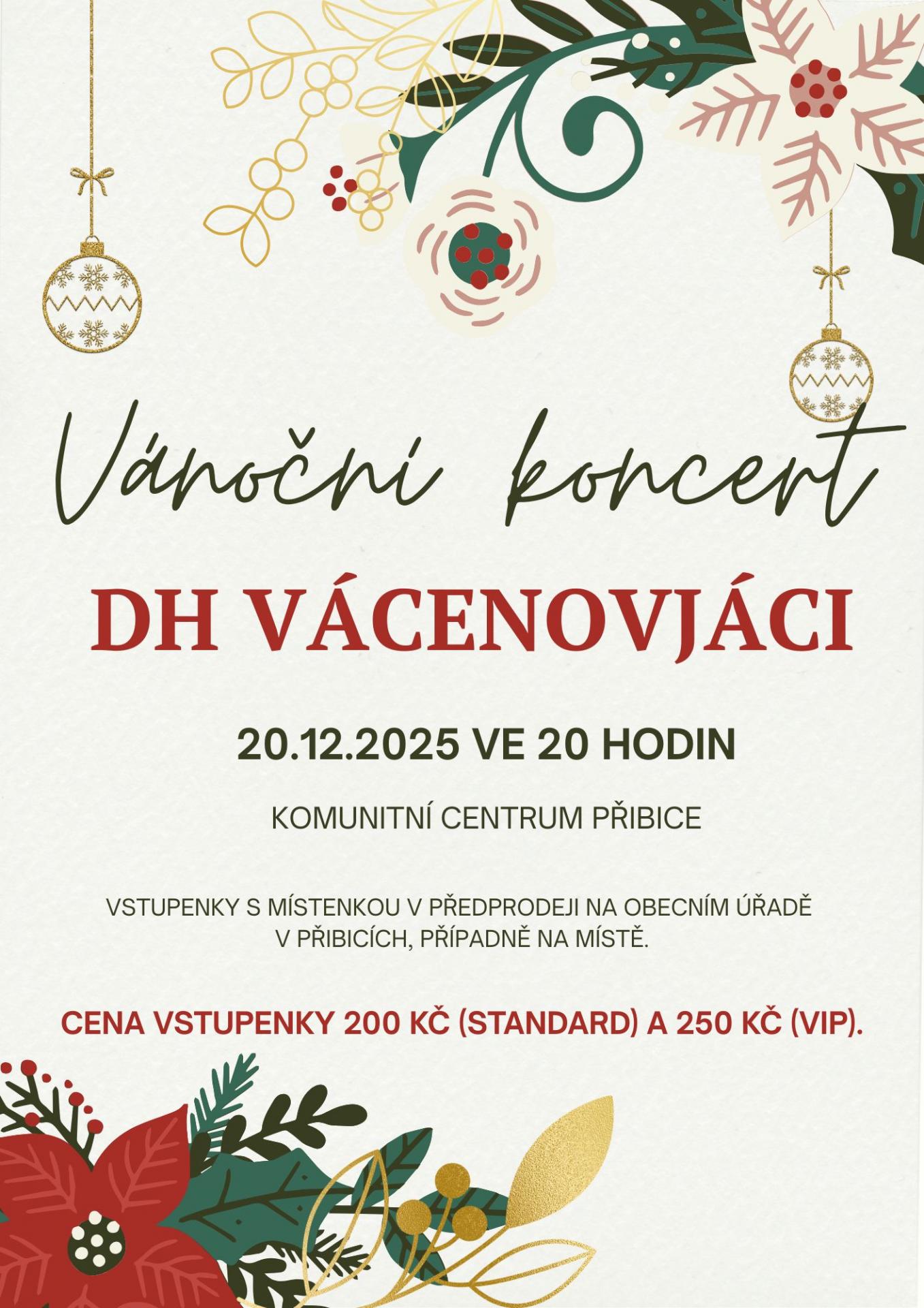 Vánoční koncert s DH Vacenovjáci - předprodej vstupenek na obecním úřadě Přibice |
